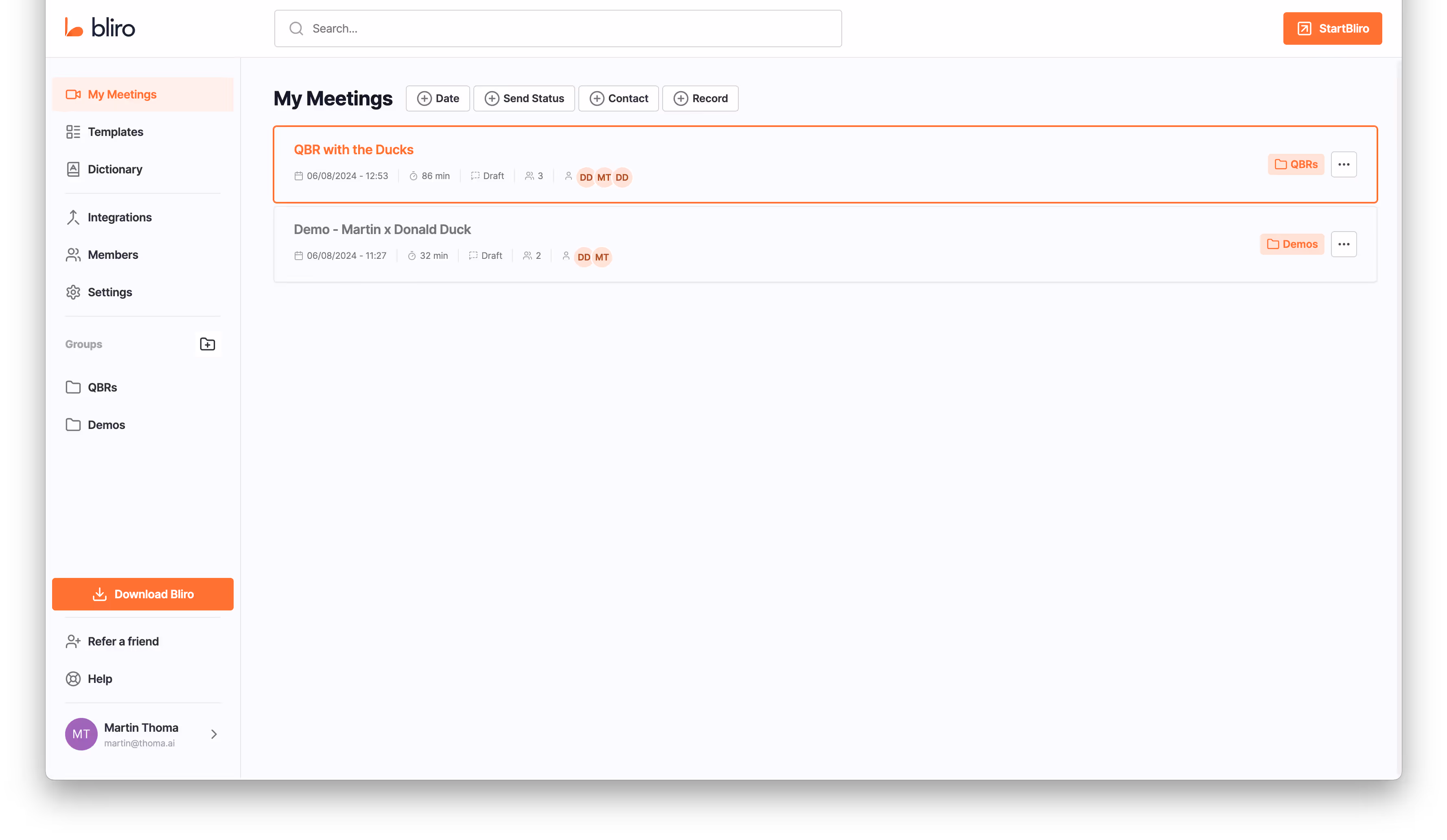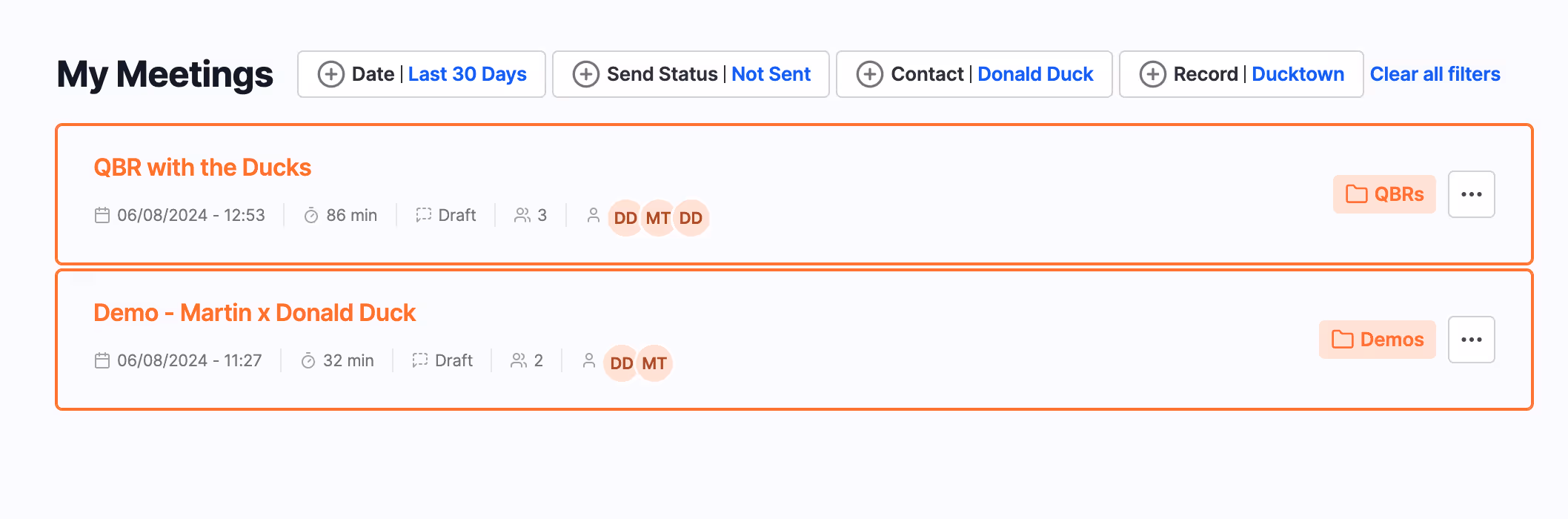 - Erweiterte Filter → Sortiere Meetings schnell nach Datum, Status oder anderen Kriterien.