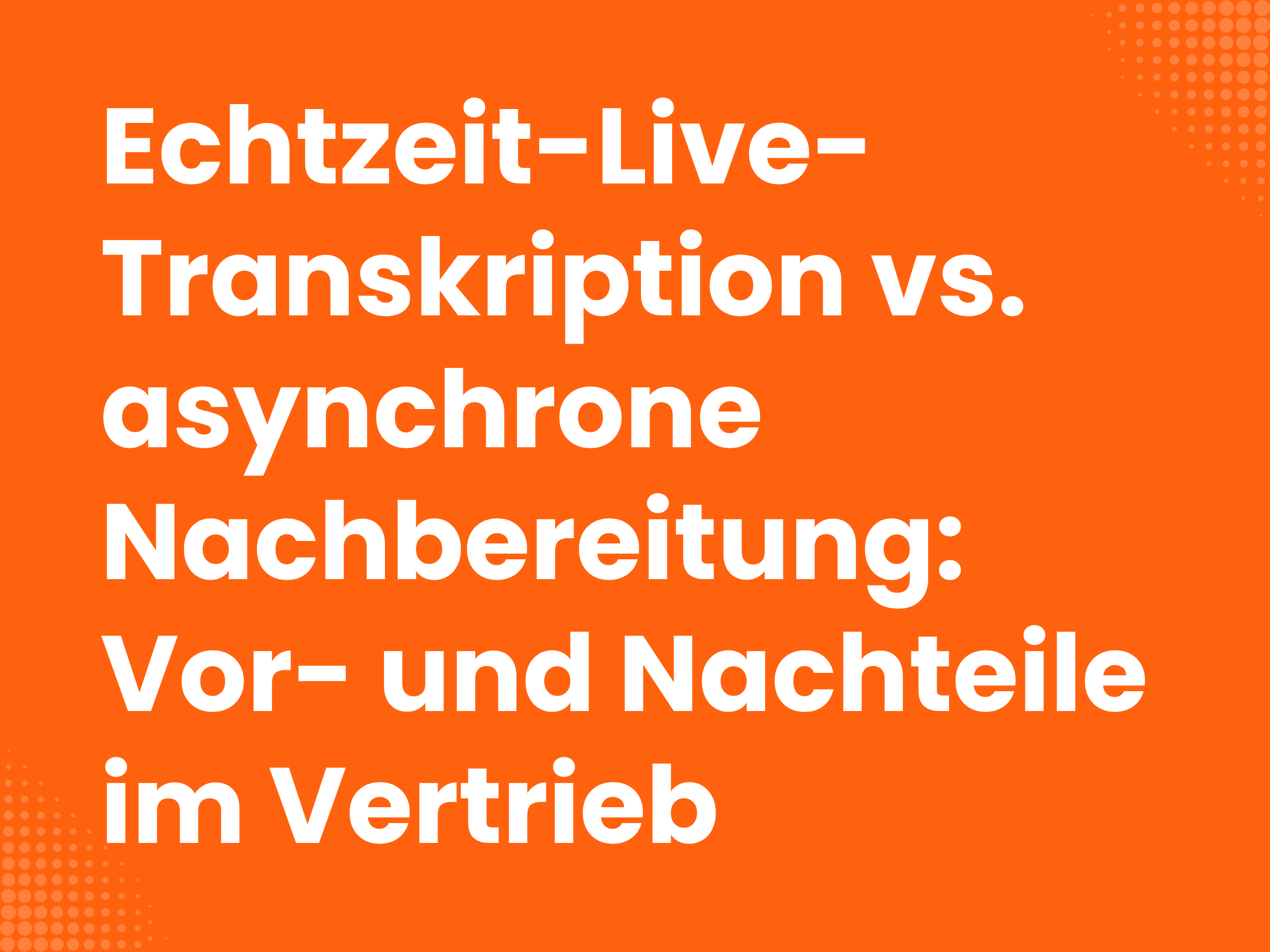 Die Entscheidung zwischen Echtzeit-Transkription und asynchroner Nachbereitung hängt vom Einsatzszenario ab. Für den B2B-Außendienst, wo Vertriebsmitarbeiter vier bis fünf Kundentermine pro Tag absolvieren und zwischen den Terminen keine Zeit für manuelle Nacharbeit haben, bietet die Echtzeit-Methode den größeren Praxisvorteil.
