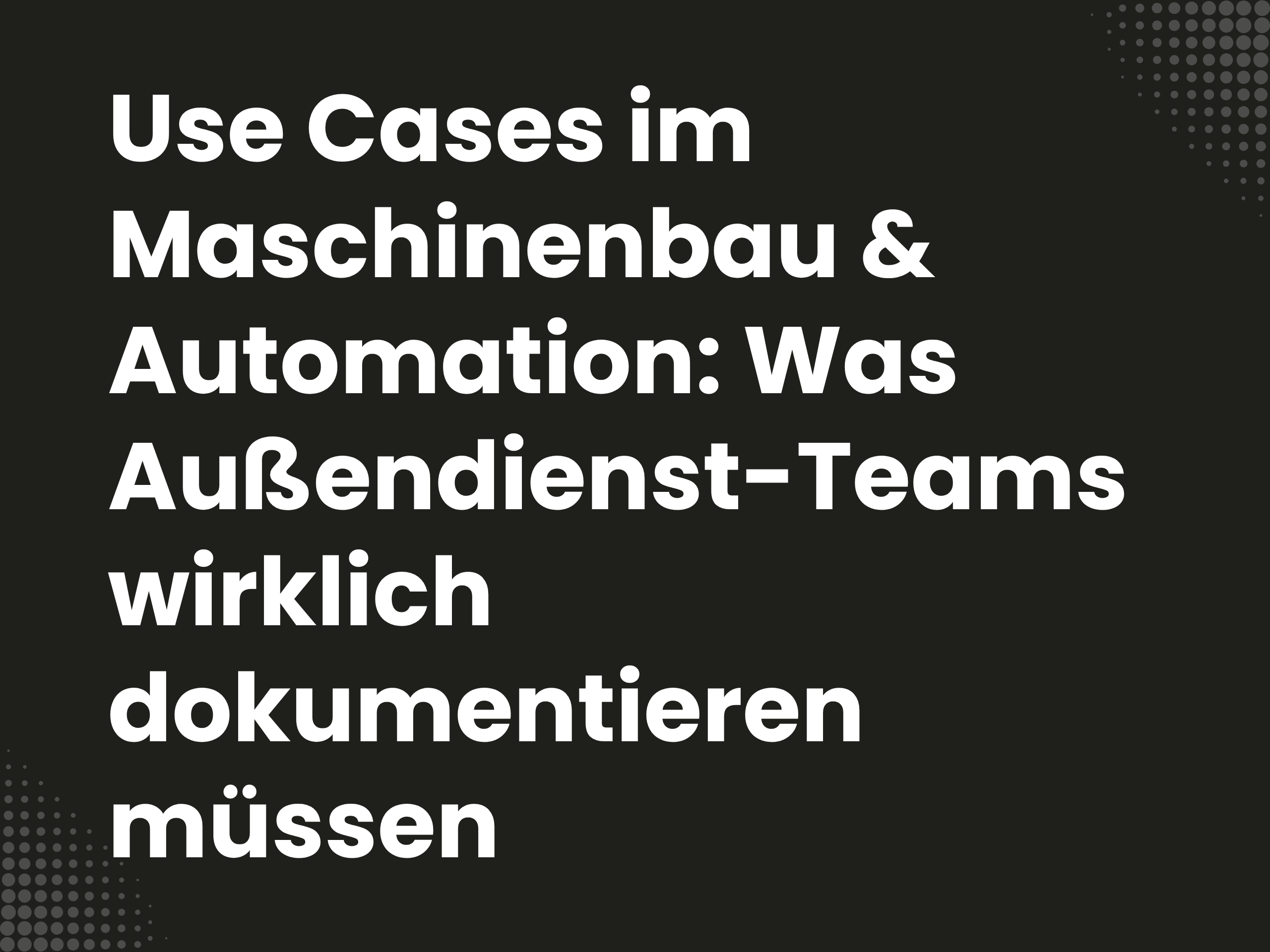 Außendienst-Teams im Maschinenbau und in der Automation führen Gespräche, die weit über einen klassischen Verkaufstermin hinausgehen. Jeder dieser Gesprächstypen enthält Informationen, die für CRM, Service und Produktentwicklung relevant sind. Die folgende Tabelle zeigt fünf typische Dokumentations-Use-Cases und welche Daten dabei erfasst werden müssen.