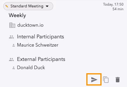 The Bliro In-Call screen has been transformed into a discreet horizontal bar. The clear design allows you to stop or pause the meeting, hide the app, write manual notes in an external note pop-up, highlight important moments in the meeting, and adjust your audio or language settings - all with a simple click.